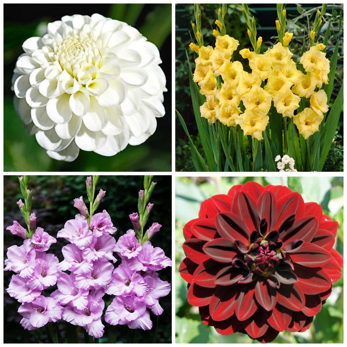 Луковицы гладиолусов и георгинов. Комплект №1 из 4 луковиц (Арабская ночь, Сноуфлейк, Альфа, Алабама )