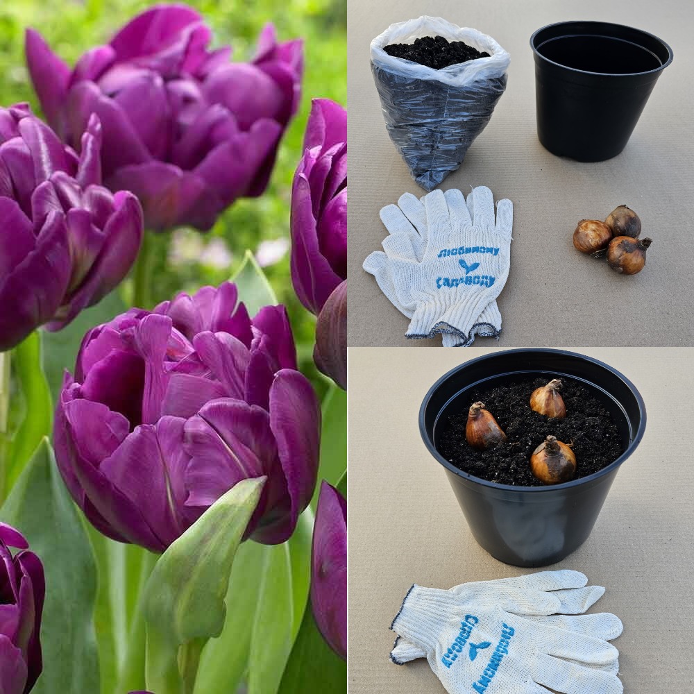 Луковицы тюльпана. Набор для выгонки 3 шт - Тюльпан Негрита Дабл