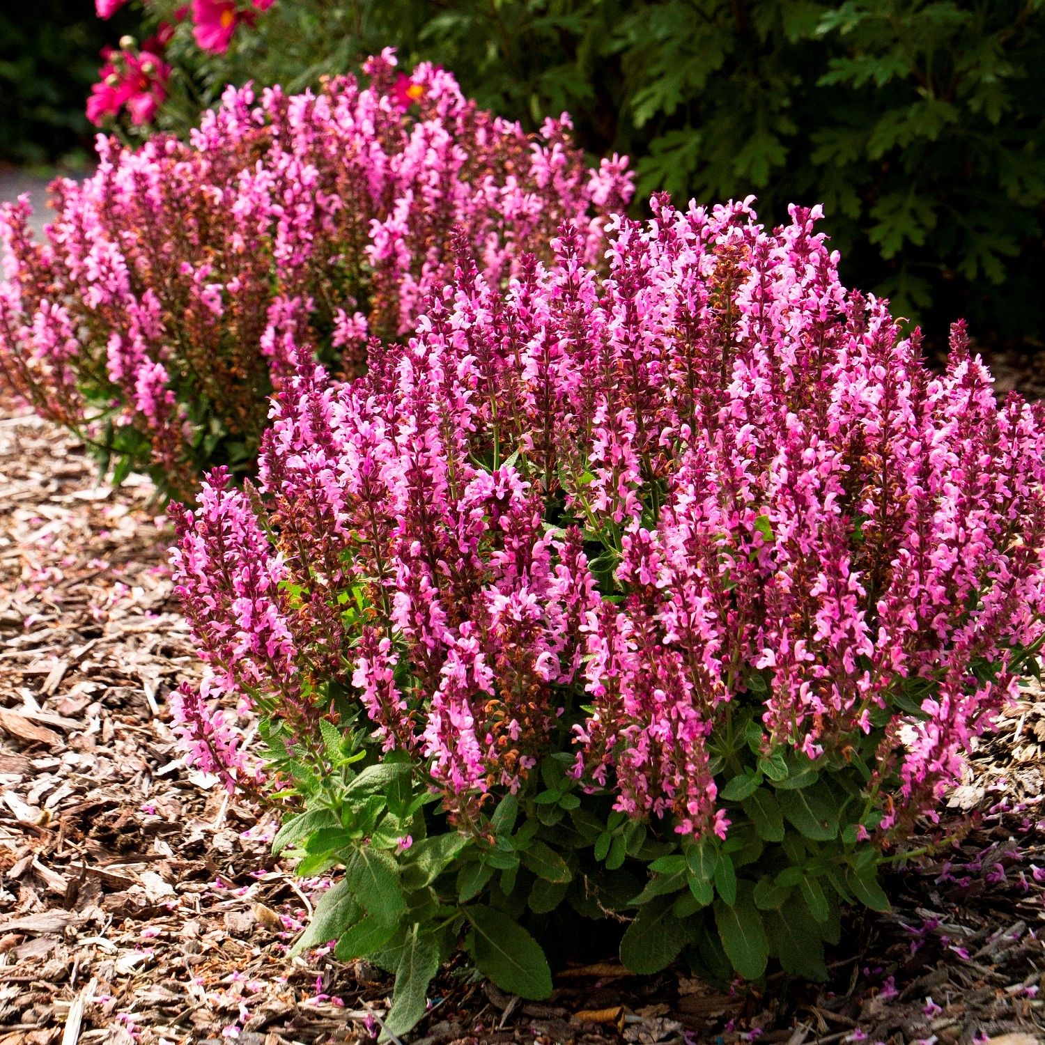 Саженец шалфея дубравного "Розовая королева" (Salvia nemorosa) – это многолетнее растение, также известное как сальвия. Оно широко используется в ландшафтном дизайне, кулинарии и народной медицине, что делает его популярным выбором среди садоводов. Шалфей "Розовая королева" особенно ценится за свои крупные розовато-фиолетовые соцветия и приятный, ненавязчивый аромат. Прямостоячие гладкие стебли растения имеют темно-зеленый оттенок, что придает ему дополнительную декоративную ценность.