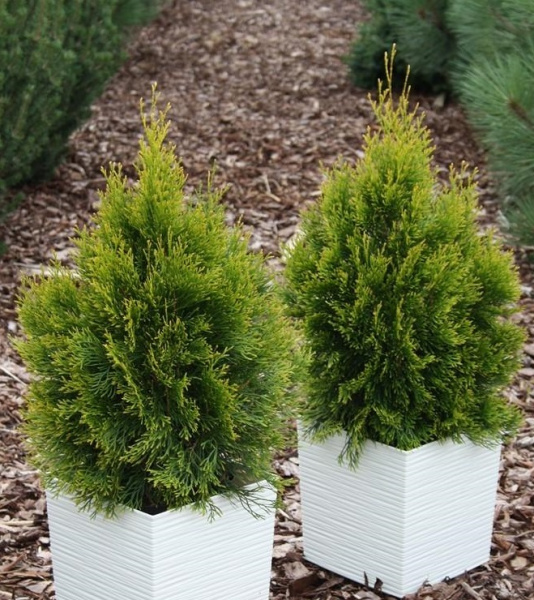 Добавьте саженец Туи западной ""Gilded Dress-NB"" в свой сад и наслаждайтесь его ярким и живописным видом круглый год!"