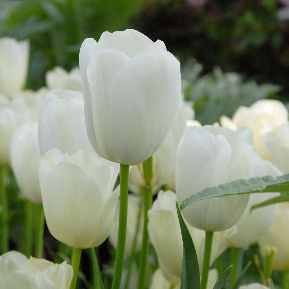 Тюльпан Maureen – это изысканный сорт, который в групповых посадках напоминает снежные вершины, нежно расположившиеся на зеленом фоне. Благодаря своему яркому белоснежному окрасу и крупным бутонам, этот тюльпан привлекает внимание и становится украшением любого уголка сада.
